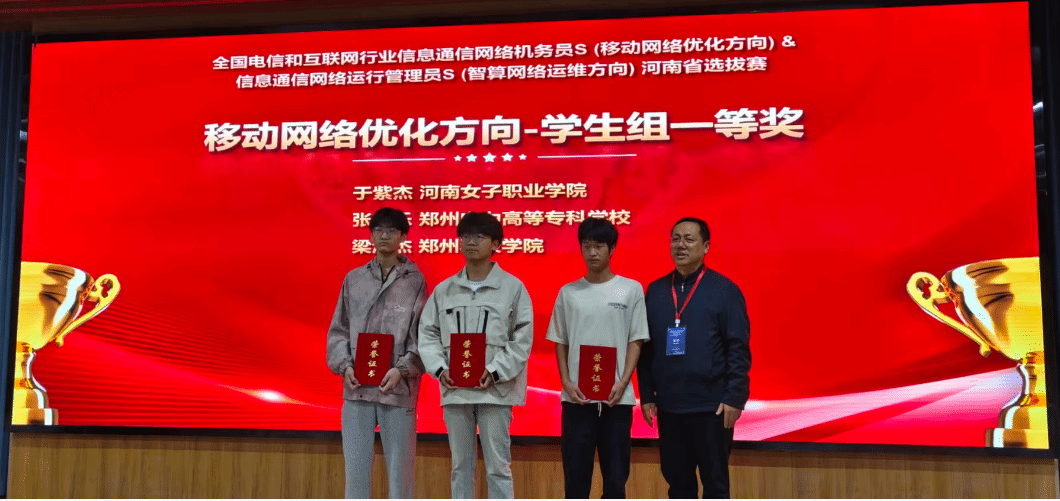 2025年9月27日,全国电信和互联网行业职业技能竞赛—信息通信网络机务员S赛项(移动网络优化方向)河南省选拔赛在郑州工业安全职业技术学院举行,来自全省高职高专院校共40支队伍参加学生组竞赛。信通学院通信2402班张康乐同学凭借扎实的专业知识和精湛的专业技能,勇夺该赛项一等奖。