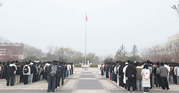 晨光熹微,伴随着激昂的指令,国旗班迈着铿锵步伐出旗。全体师生整齐列队、精神饱满,面向五星红旗肃立注目,五星红旗在雄壮的国歌声中冉冉升起,爱国情怀与青春朝气在现场交融激荡。
