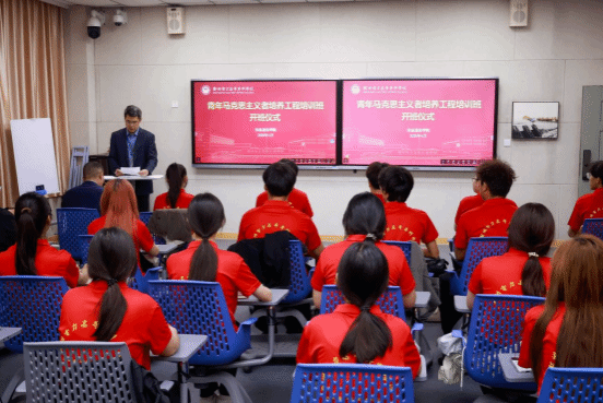 为深入学习贯彻习近平新时代中国特色社会主义思想,扎实推进青年马克思主义者培养工程,4月10日,信息通信学院举行2026年度“青马铸魂守初心,笃信致远担使命”青年马克思主义者培养工程培训班开班仪式。学院党总支书记、副院长、团总支书记及全体青马班学员参加仪式。